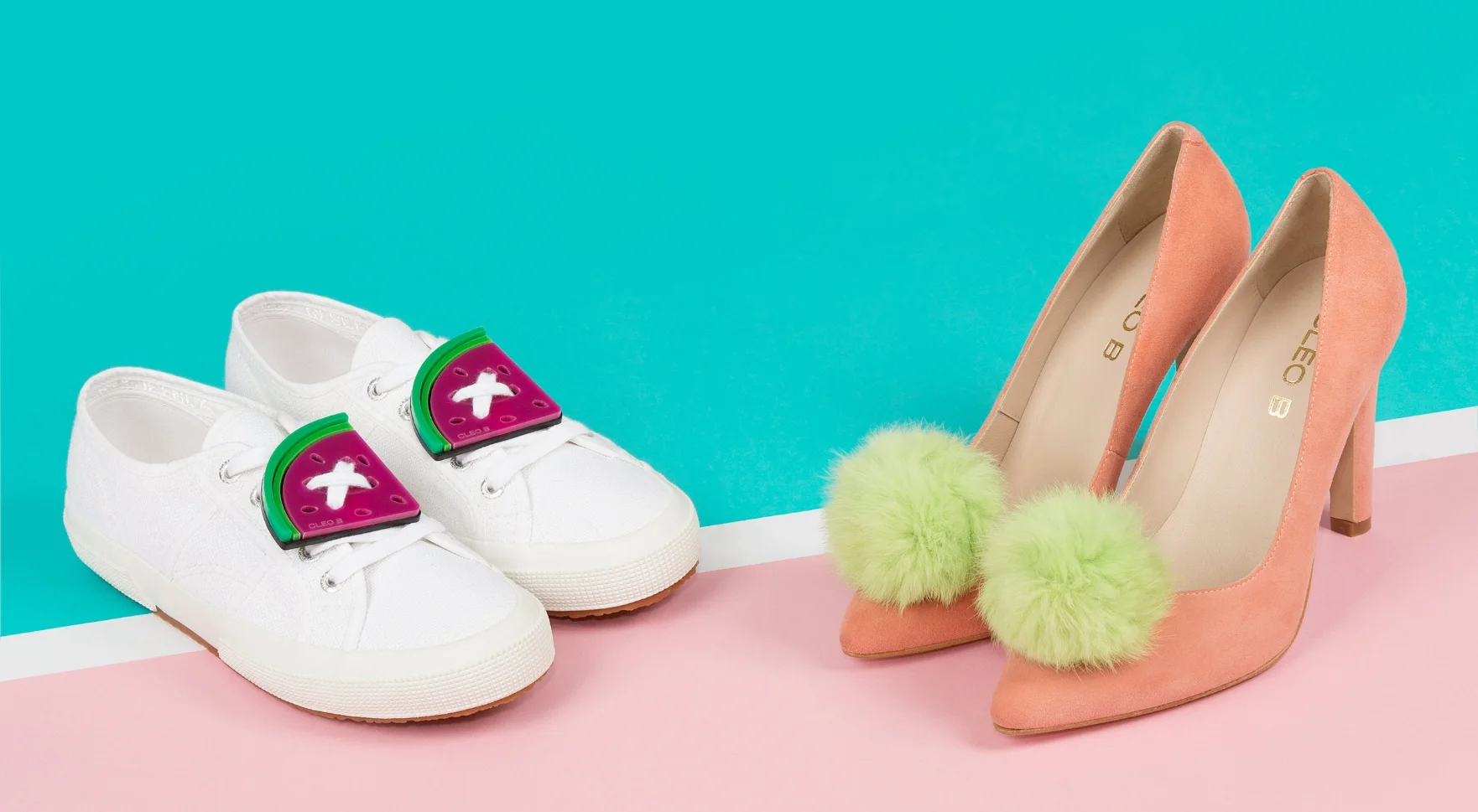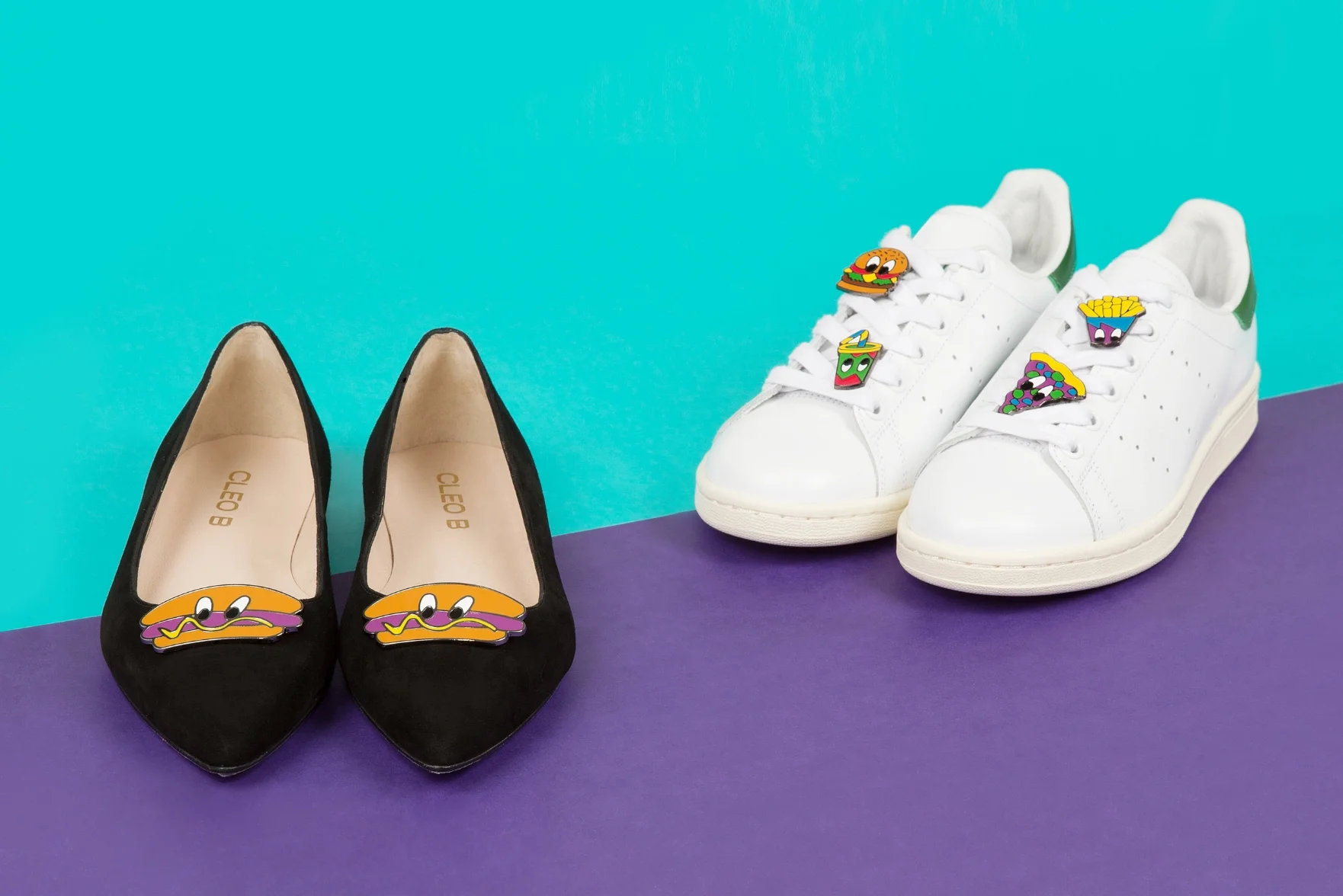 A fun-loving capsule collection of tropical fruit and junk food inspired shoe accessories. Cleo continues to design a collection of Cleo B lace accessories alongside her illustrations and prints, which includes lace charms, lace grills and lace locks.